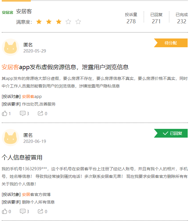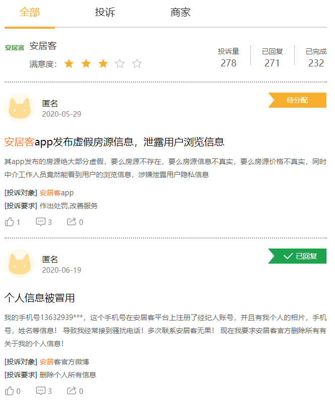 虚假房源泄露隐私 差评如潮