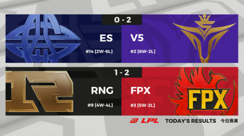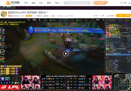7月5日虎牙LPL夏季赛常规赛第五周第七日比赛正式开战,今日比赛虎牙二台邀请到了人气明星UZI为大家带来同步解说,赛后虎牙临平路菜场则是邀请到虎牙主播官总为大家带来比赛复盘。第一场比赛由ES对战V5,首局比赛V5全线碾压,小东北佐伊飞星乱入大杀四方,第二局则是由Samd寒冰神箭一击致命,V5直接2比0拿下ES。第二场比赛由RNG对战FPX,首局比赛RNG凭借GALA团战爆炸输出先下一城,但接下来两局RNG都没能把握好前期的优势,惨遭FPX让一追二。
