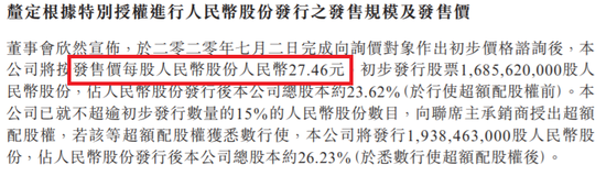 按照27.46元/股的发行价计算,超额配售选择权行使前,预计公司募集资金总额为462.87亿元;而若超额配售选择权全额行使,预计公司募集资金总额为532.30亿元。