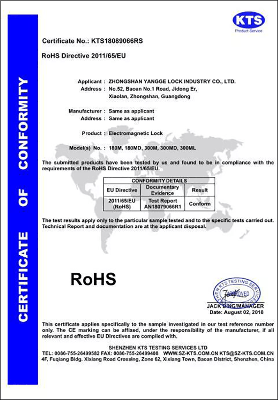 杨格锁业作为中国智能锁行业的领军企业,以卓越的性能和超高的安全标准而著称。也是国内少有的同时通过了ROHS和CE电子锁的最高标准两大世界顶级认证的企业。