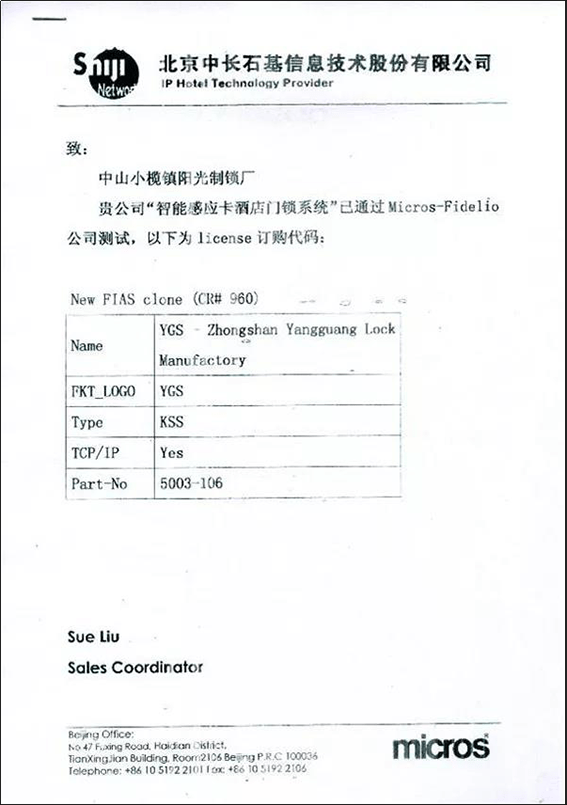 杨格锁业酒店门锁软件通过此次认证,意味着杨格锁业可以与全球星级高端酒店管理软件无缝对接,全球酒店智能化升级转型更便捷,既可以采用杨格智慧酒店管理系统,也可以延用酒店自有的管理软件 。