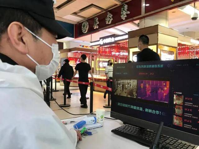 这一系统,采用“技防+人防”的筛查模式,实现了高速体温筛查,温差控制在0.3摄氏度以内,一旦有超出标准的就会报警通知工作人员,用技术为商场的安全运营保驾护航。