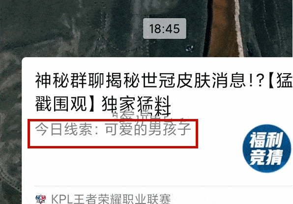 大家从图中也可以看到,上面写着线索是可爱的男孩子,但在游戏中一提到这个修饰语的话,不少人的第一反应就是孙膑。但这个英雄在比赛中的登场率极低,本身也已经有了很多皮肤,估计本次应该是说别的英雄。