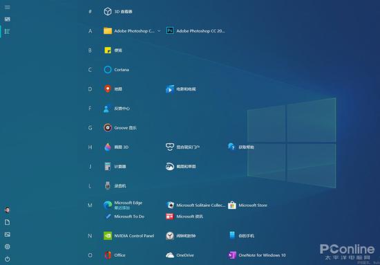 除了磁贴底色以外,程序列表的底色也被一并取消。整体看上去更加协调,特别是文件夹和第三方程序,视觉感要比现版好上很多。