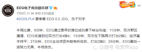 昨日EDG在对JDG的比赛中,被零封暴打,随后官方微博对于本场比赛也没做过多评价,但是微博留言异常丰富,让EDG的老粉看得老泪纵横,不得不说Aodi回归EDG后确实还是有很大提升的,但是战术安排上并不符合他的性格和发展方向,就像当年给厂长拿猪妹一样。