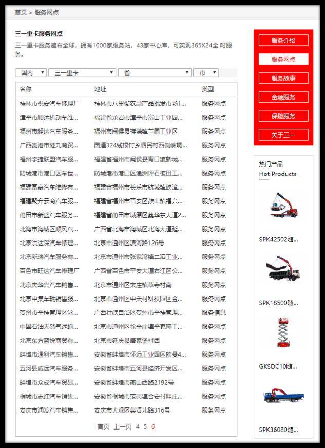 截图为某湖南重卡企业官网查询“全国服务网点”查询结果