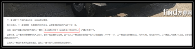 据相关报道称,该重卡企业“员工只有500多名(正式员工只有300多人)”。从事服务工作的团队有多少人呢?