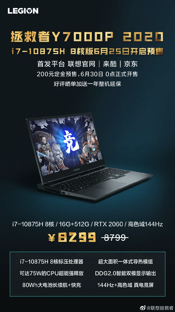 然而,在6月24日,联想上市了一款全新的拯救者Y7000P 2020款电脑,搭载英特尔i7-10875H八核处理器,硬盘配置为512G SSD,预售价仅为8299元,这款处理器性能更高但售价更低的电脑,成为点燃舆论争议的导火索。