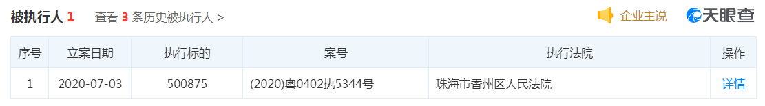 天眼查信息显示,阿里巴巴(BABA.NYSE/09988.HK)新增一条被执行人信息,立案日期为2020年7月3日,执行法院为珠海市香州区人民法院,执行标的为500875元,案号为(2020)粤0402执5344号。