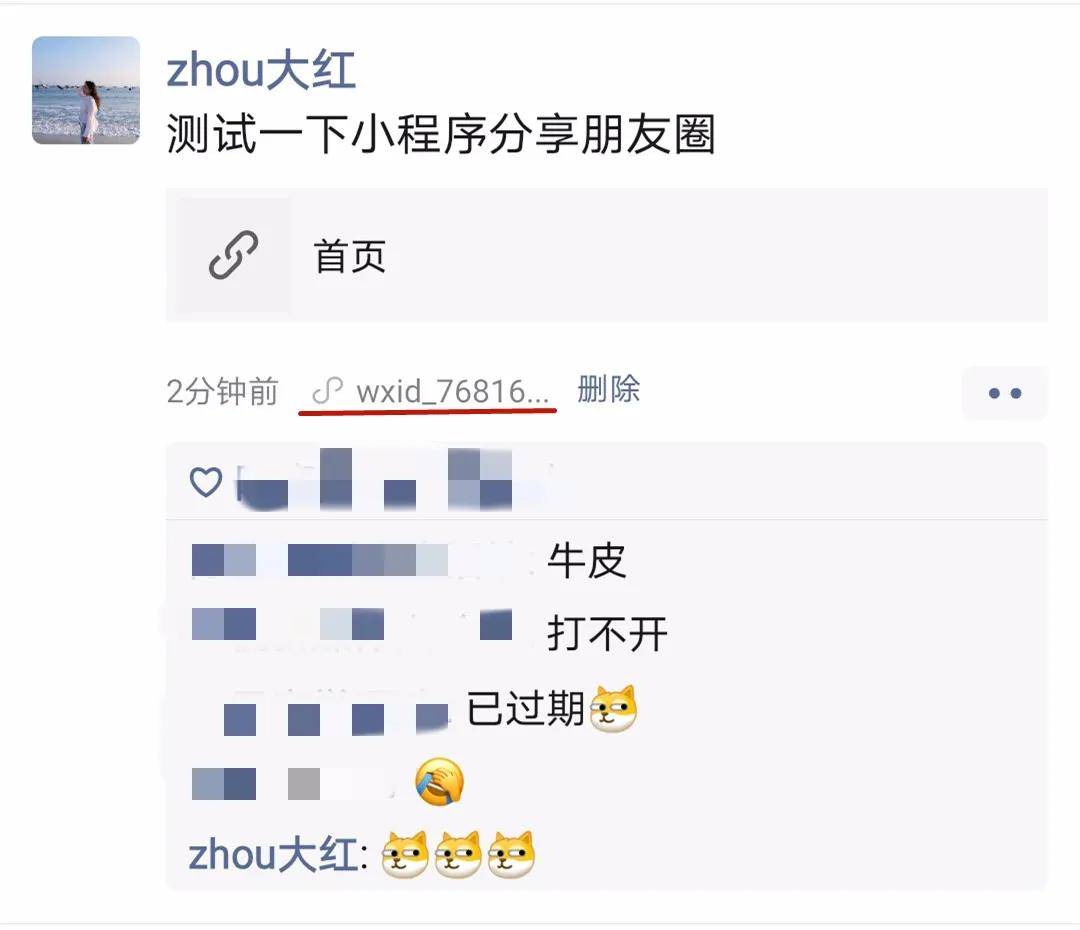 不过,因为我们的小程序是开发版本,即使分享到朋友圈,没有权限的用户也是打不开的。