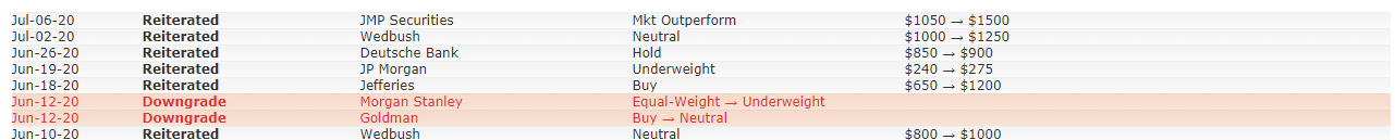 Wedbush分析师艾夫斯(Daniel Ives)将目标价上调至1250美元。他认为,在疫情封锁的情况下交付还能达到9万辆,特斯拉的表现真是令人瞠目结舌。艾夫斯指出,稳定的交付量提高了人们对第二季度获利的预期,这也意味着特斯拉或将迎来历史上首次连续四个季度获利。