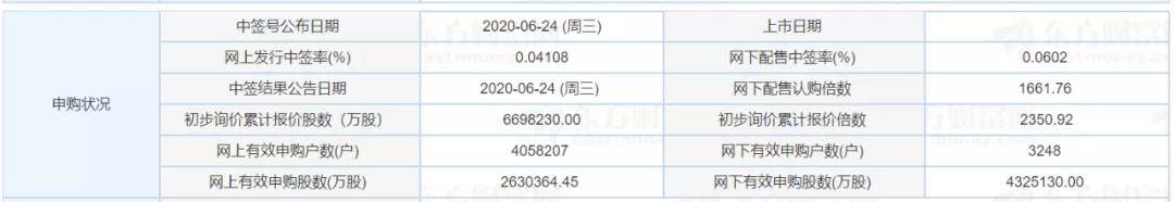 6月22日,天智航股票发行价格确定为每股12.04元,接下来,天智航股票的首批网上申购中签号出炉,申购人数达到了406万人,申购股数近700亿,中签率低至0.041%。