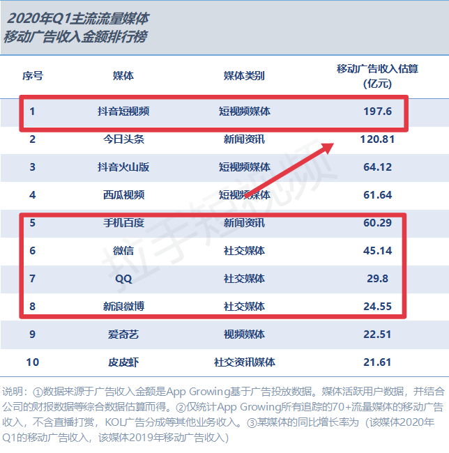 数据说明:仅统计我们所追踪到的中国大陆70+流量媒体的移动广告收入,不含直播打赏,KOL广告分成等其他业务收入。
