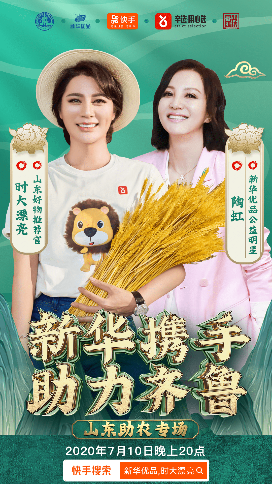日前,新华社所属创新平台新华优品宣布,将携手快手平台、辛巴辛选团队、陶红等公益明星于7月10日晚20:00-23:00在“新华优品”官方快手账号(1911861922)、时大漂亮快手账号(ss19908888),举办“新华携手 助力齐鲁”为主题的直播带货活动。据悉,此次直播带货活动的产品都是经过山东省烟台市以及新华优品与辛选团队挑选的地标精品。此外,辛巴辛选团队主播时大漂亮、陶红等公益明星也将共同助力此次直播活动的成功。