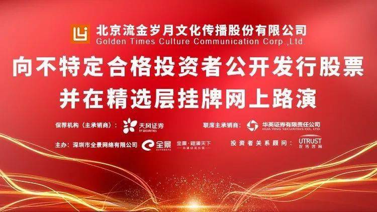 原标题:直播互动丨流金岁月向不特定合格投资者公开发行股票并在精选层挂牌网上路演