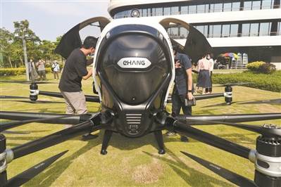 在南沙花园酒店,已经有亿航载人级自动驾驶飞行器。