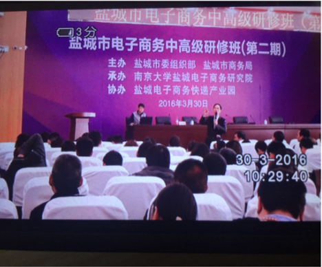 3月30日上午,由盐城市委组织部、市商务局举办的盐城市党员干部现代远程教育第二期中高级电子商务研修班,在盐都高新区盐渎街道电商快递产业园开班。