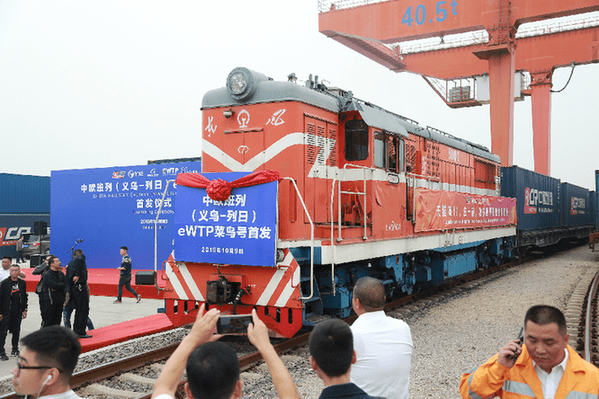 中欧班列菜鸟号首发。义乌是阿里巴巴国际站的核心产业带之一。