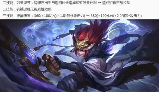 加强;2技能调整为命中时的眩晕效果定身控制,且无视韧性效果,大招伤害增加。还是不错的加强,期望在峡谷看到更多玄策哥哥。