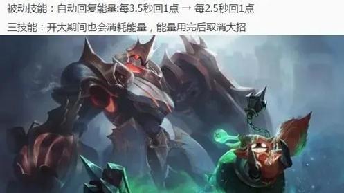 削弱;被动能量回复速度变快,大招改为消耗能量,能量用完取消大招。所以逆风局盾山没啥作用了,大招消耗能量可以优先选择打破盾,毕竟kpl上盾山的优先级和恶心程度有点高。
