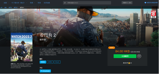 据悉,育碧本次线上发布会开始时间是凌晨3点,但会提前一个半小时开启预演活动。《看门狗2》游戏的售价为420港币,最近两折促销只需84港币,但不管多少钱,谁能阻挡白嫖的快乐呢(滑稽)。