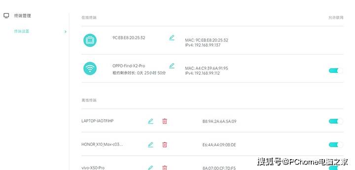 相比使用手机端APP,PC端可以对更多选项进行专业设置,比如设备联网管控、网络接入设置、5G开关调节等等。