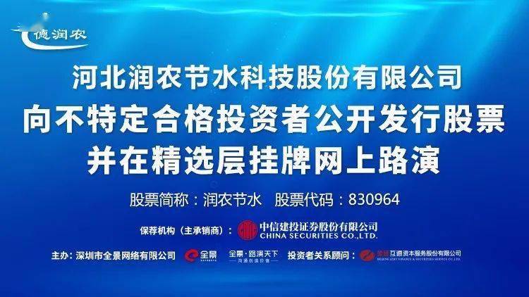 润农节水向不特定合格投资者公开发行股票并在精选层挂牌网上路演