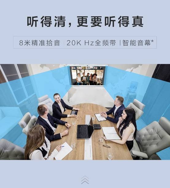 然而,高品质的画面只是第一步。在大型政企会议现场,与会者众多,环境嘈杂,也容易降低远程与会人的接收效率。因此,会议设备仍需要对信息进行分析、过滤,从而第一时间传递关键信息。