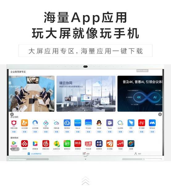 在强大的硬件、系统层之上的,则是华为丰富的应用生态。目前,华为应用市场中已有 170 多款适配大屏办公的应用,支持用户像下载手机 App 一样配置企业智慧屏。此外,它还内置了信息窗、录屏等高频应用,作为企业文化宣传窗口,文化海报、新闻推送、活动通知等。功能丰富的华为企业智慧屏对于企业办公场景来说,就像是“办公宝”一样的存在。