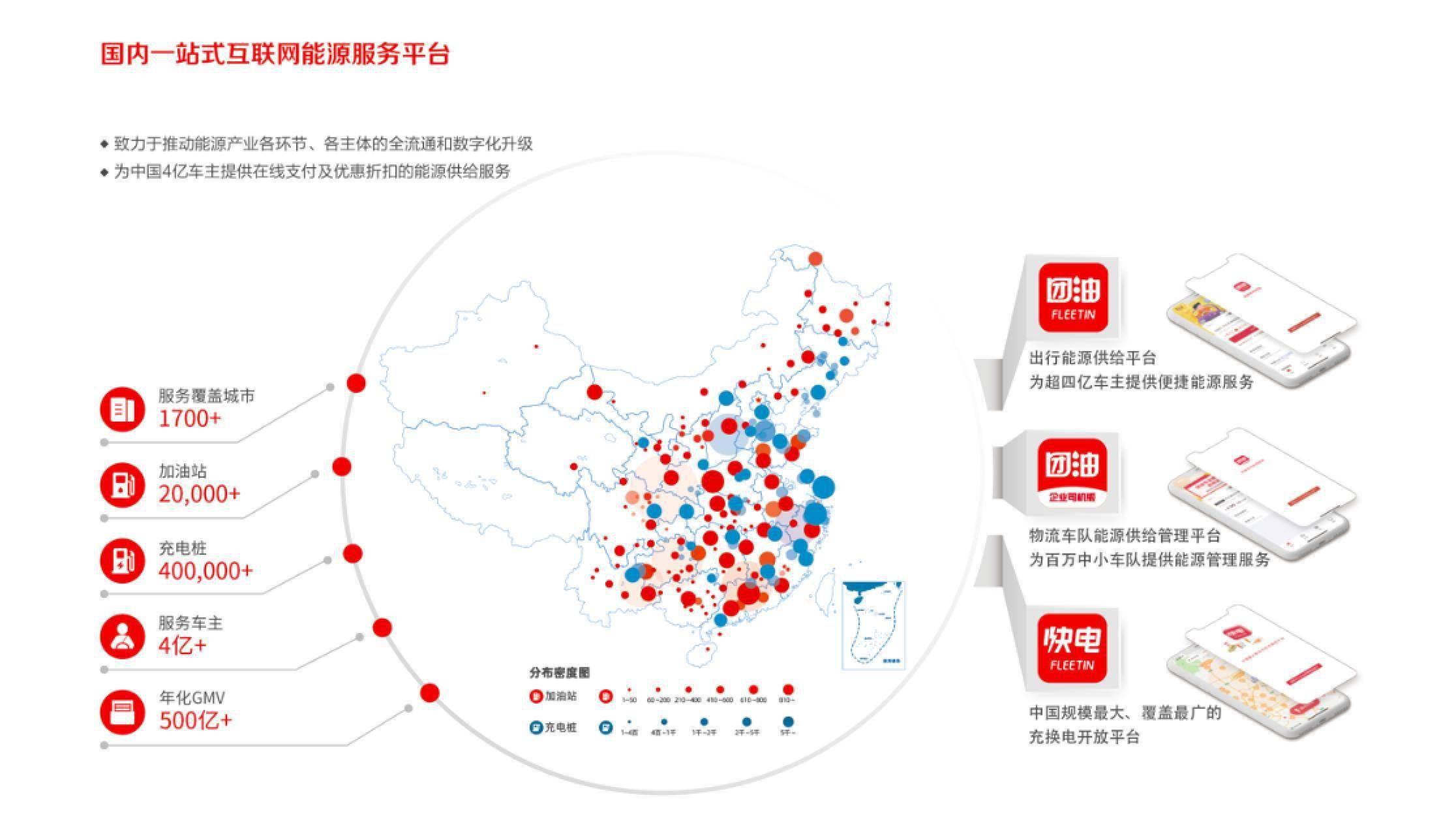 目前,能链业务已覆盖国内1700余城市。其中,团油连接加油站2万余座,超过31%的民营及外资油站总量;快电连接40余万根充电桩,占据国内公共充电桩保有量的80%。通过与曹操专车、91租车等出行平台合作,快电覆盖超过50%新能源车主。