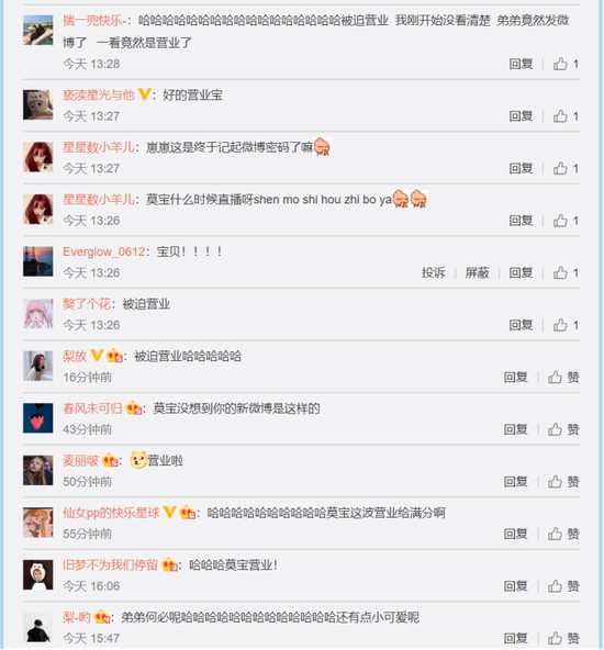 夏季赛【WEBOY真敢往外说】活动被迫营业的还有莫宝,这是除了18岁生日微博外的第二条微博,有生之年系列奉献给了比心WE男团,粉丝们也是给出了满分。上单弟弟终于让男团有了点饭圈味道。