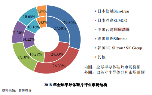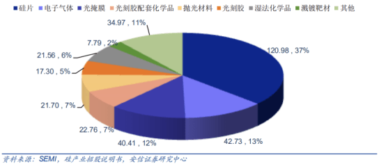 2018年全球半导体制造材料市场结构如下图所示: