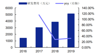 同时,随着光伏行业对成本控制和技术标准的要求越来越高,为提高产品竞争力,以保持在同行业中领先水平,公司不断通过自主研发提高技术创新水平。公开数据显示,2019年,连城数控研发费用为5,098.13万元,较上年同期增长32.12%,研发费用率为 5.24%,公司近年来研发费用情况如下图所示:
