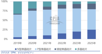 全球光伏装机长期需求向好,带动各环节产业规模保持快速增长势头,其中单晶硅为主流路线。2019年,单晶硅片(P型+N型)产量约占65%,作为主流技术路线持续渗透。受此影响,单晶硅片企业持续扩张产能。而单晶炉、开方机、切片机、磨床等设备均为单晶硅生产和单晶硅片加工的核心设备,需求有望相继释放,连城数控将持续受益于下游客户产能的和扩张。单晶硅市场占比情况如下图所示: