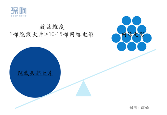 但“网络电影补位院线新片”只能是数量上的权宜之计。体量上,网络电影还是无法与院线片相比。从给平台带来多大效益的维度看,10-15部网络电影都不一定能抵上1部《流浪地球》水平的院线片。