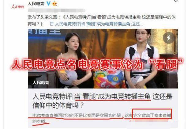 电竞赛事直播,但是部分观众并不是为了看比赛面来,直播间吸引观众的也不是高水平的比赛和赛事解说,而是女嘉宾的腿,这完全背离了赛事直播的本质。