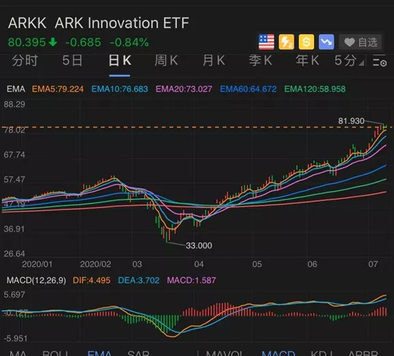 今年以来,以重仓特斯拉而知名的Ark Innovation ETF(ARKK)基金收益已超60%。
