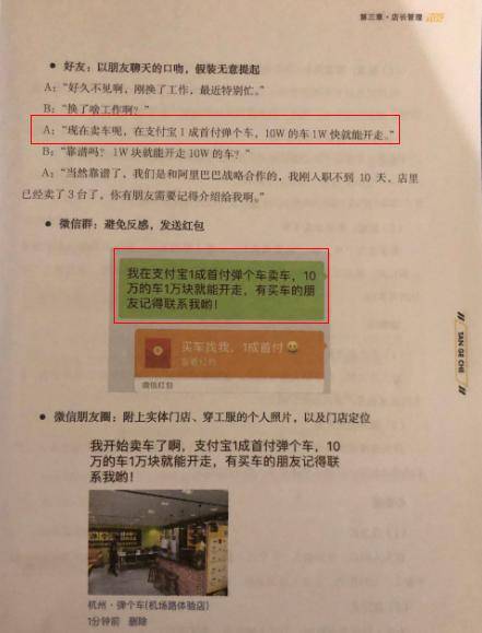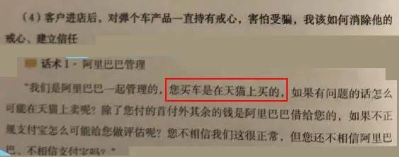 线下的销售员,也会告诉客户是买车,他们会极力避开“租车”。在一份《弹个车员工成长手册》里,教导员工如何消除客户的戒心,采用的话术就是:我们是阿里巴巴一起管理的,你买车是在天猫上买的,如果有问题的话怎么可能在天猫上卖呢?