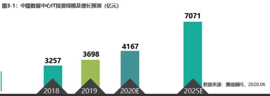 2019年中国数据中心IT投资规模为3698亿元,预计2025年,系统智能化将受到更多的重视,数据中心IT投入将可能相比2019年翻倍,达到7071亿元。