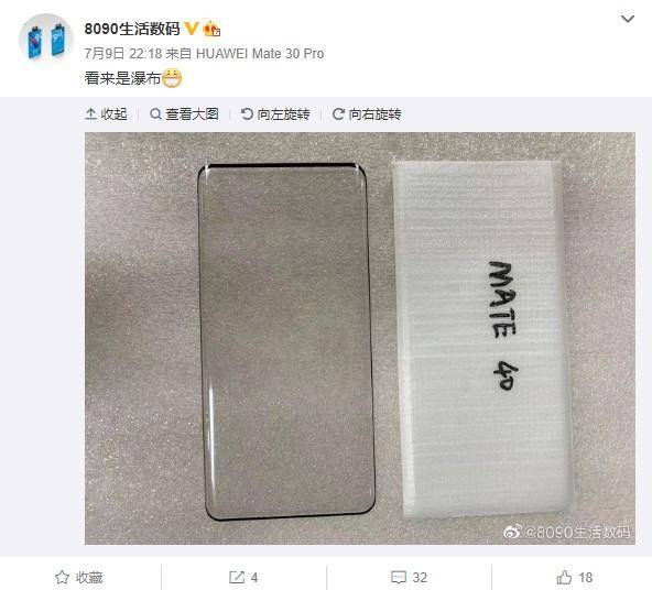 而另外一位知名数码博主,也是一位贴膜厂商 @8090 生活数码也晒出了下一代华为Mate 40的屏幕贴膜,从爆料出来的贴膜以及爆料信息中来看,也是应该已经确认华为Mate 40将会全系列标配瀑布屏了。