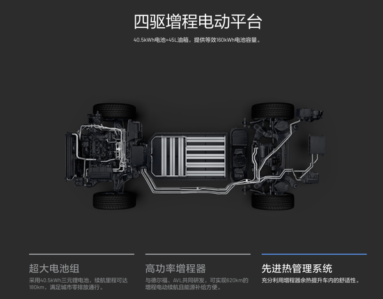 传统新能源车的动力系统包含电驱、电控、电池三大件,而增程式电动车还内置了一个里程扩展系统,包括发动机、发电机和燃油箱,也就是说,在电池电量耗尽时,增程式电动车可以通过燃油发电,驱动汽车运转。
