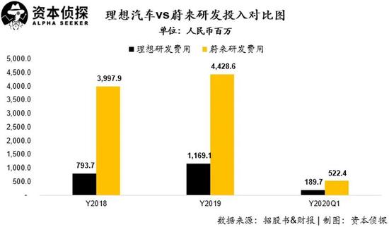 从2019年研发费率来看,理想在研发层面的投入远低于蔚来:根据蔚来财报显示,2019全年其经营费用为98.8亿元,经营费用率为126%,研发费率为60.8%。
