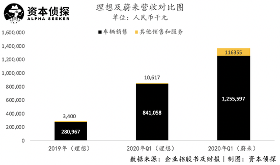 仅从交付和营收来看,理想与蔚来还有一定差距:2020年Q1,蔚来的营收为13.7亿元人民币,此外,在第二季度蔚来的交付量有较大增长,季度内共交付了10331辆汽车,同比增长190.8%,环比增长169.2%。