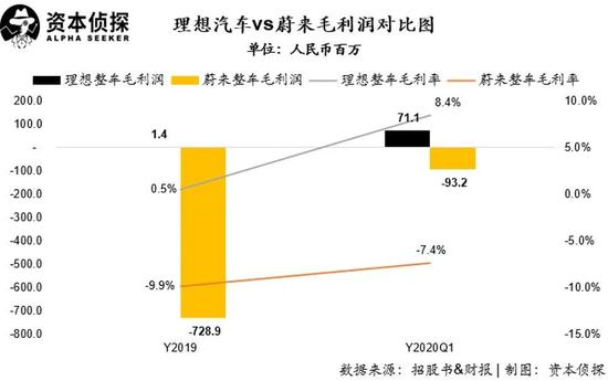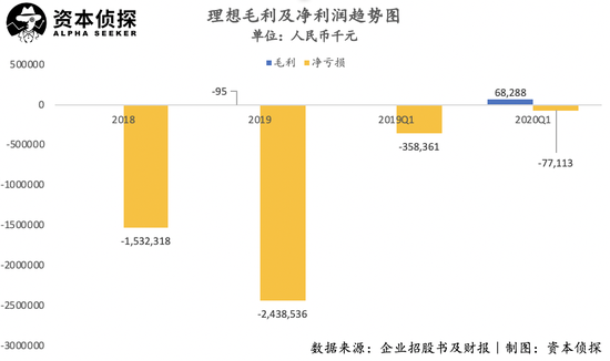 2020年第一季度,理想汽车实现营收8.4亿人民币,实现毛利6828.8万人民币,毛利率为8.02%。