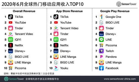 榜单前五名另外三款应用为Tinder,腾讯视频和爱奇艺。