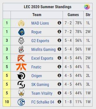 LEC积分榜: