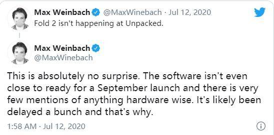 而对于许多人一直期待的下一代,也就是Galaxy Z Fold 2,最近就有外媒的爆料者Max Weinbach爆料称这款机型或许不会如期也就是在8月5号发布,而其中推迟发布的主要原因就是由于形态的创新,所以在部分的系统以及软件的适配工作上还没有完全准备好。游戏网