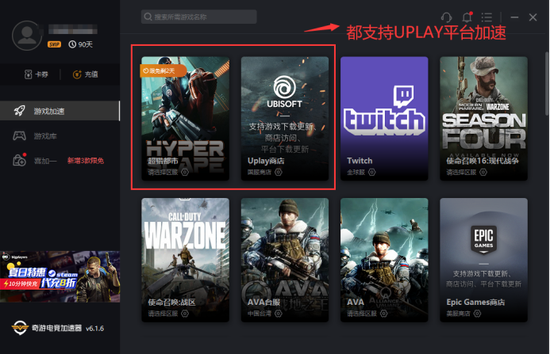 如果有遇到无法下载、中途安装失败问题,也属于UPLAY网络问题范畴,记住奇游加速器不要关闭,可以有效规避这类问题: