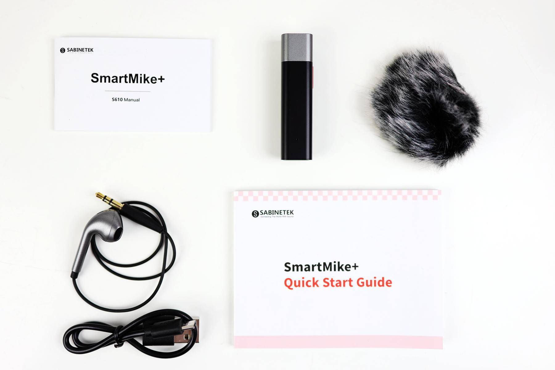 退去包装,能够看到塞宾智麦无线蓝牙麦克风的配件也是满丰富的说,说明书,保卡,主机,监听耳机(单耳),充电线,海绵罩,防风罩;双麦组合的话,会多一根三、一根四芯转接线,可以实现主从配对,给相机或者手机使用,优势是可以脱离官方智麦APP与其他第三方设备和APP使用。