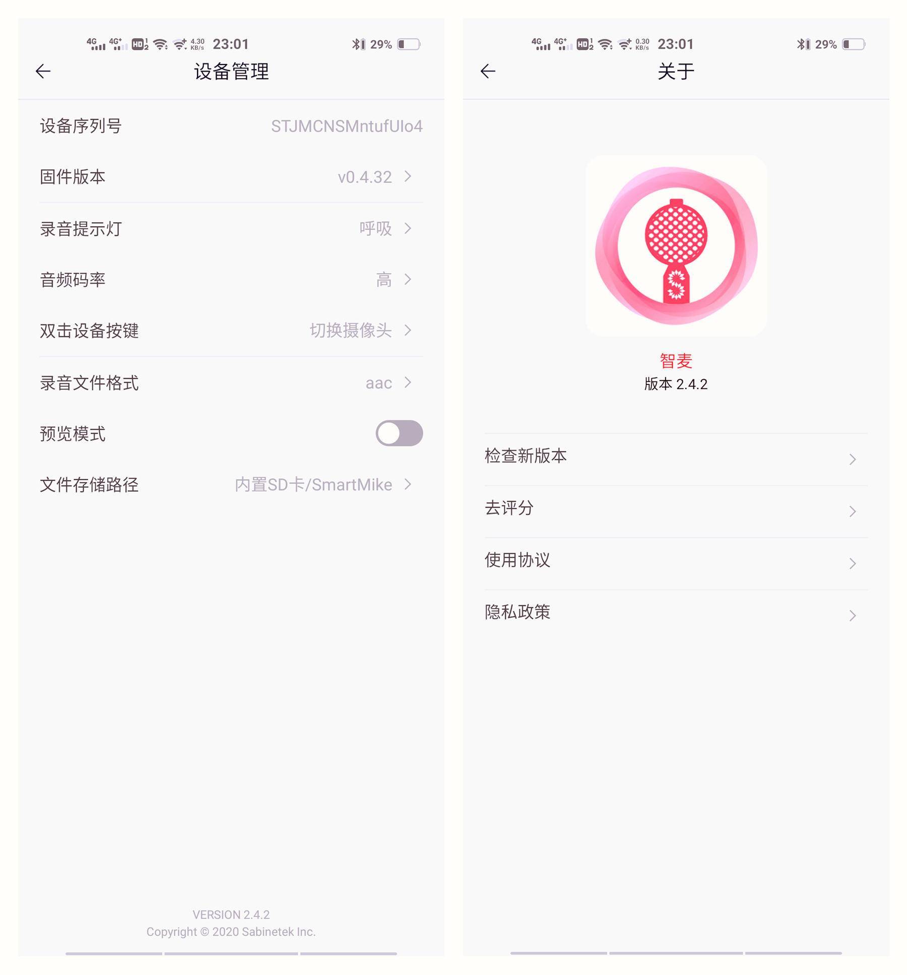 然后智麦APP也支持固件更新,同时还能够选择音频码率等操作;就APP方面,配对简单,类似于蓝牙耳机配对,成功率特别高;然后就是软件界面设计简单,功能全面。
